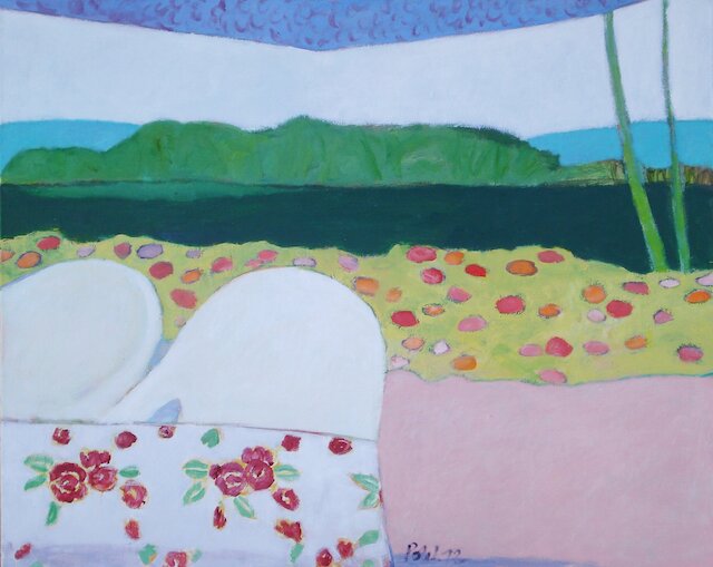 Christina Pohl, Garten am Fluss, Öl auf Leinwand